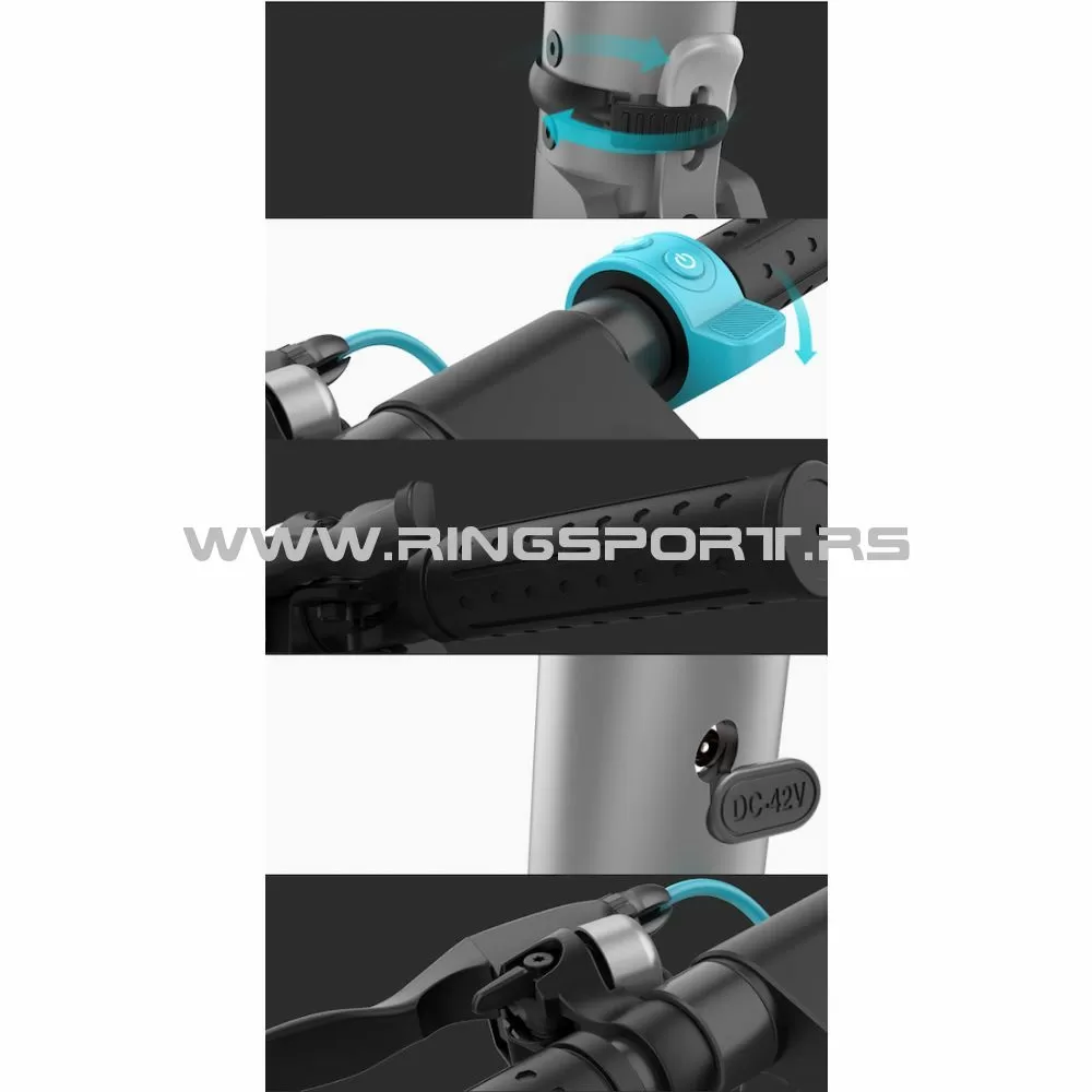 Računalo: moderan dizajn. Pokazuje razinu preostale snage baterije, brzinu kojom vozite ... Prikazuje trenutnu brzinu kojom vozite. Jednim gumbom kontrolirate paljenje svjetla, podešavanja na safe "mode" kao i on / off opcija.