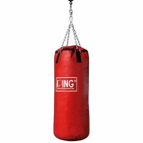 Opis: Boksačke vreće izrađene su od nove generacije materijala (jakog plastificiranog materijala) koji je ljepši, jači i puno jeftiniji od kože. Inače, sve najpoznatije svjetske tvrtke sada izrađuju bokserske vreće od ovog materijala. Puni se tekstilnim restlesima koji se lako pune u vrećicu. Trenutno lansiramo nove modele koji imaju izniman dizajn. Na vrhu se nalaze lanci sa stropnim nosačem. Osnovne boje su plava, crvena i crna, iako postoji mogućnost izrade bokserske vreće po želji kupca u pogledu posebne dimenzije i boje.